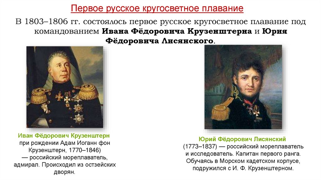 командованием Ивана Фёдоровича Крузенштерна и Юрия