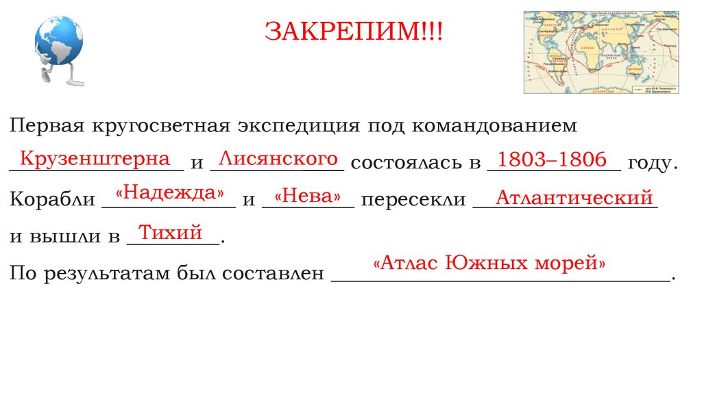 ЗАКРЕПИМ!!!Первая кругосветная экспедиция под командованием