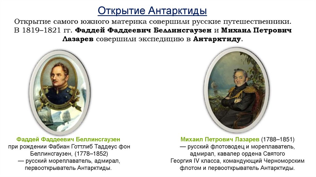 В 1819–1821 гг. Фаддей Фаддеевич Беллинсгаузен и Михаил Петрович