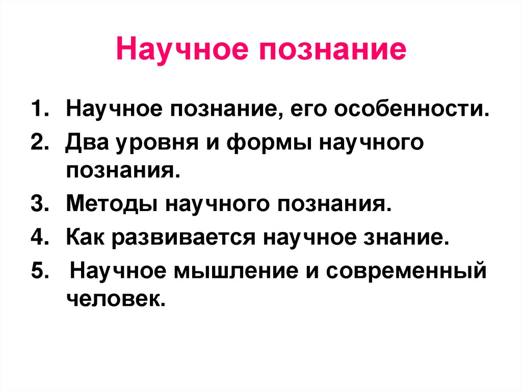 1. Научное познание, его особенности.2. Два уровня и формы научного
