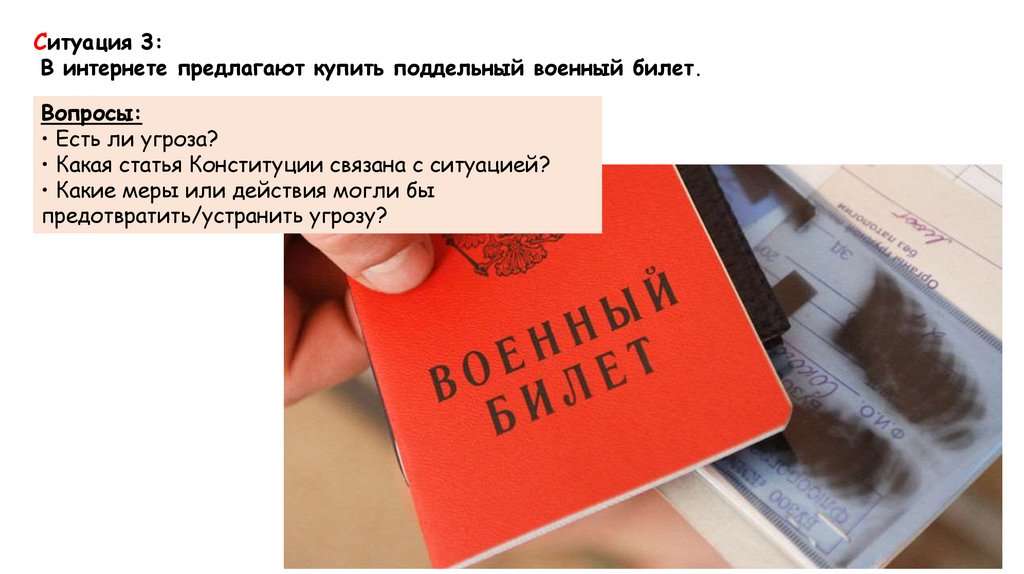 Ситуация 3:В интернете предлагают купить поддельный военный билет.