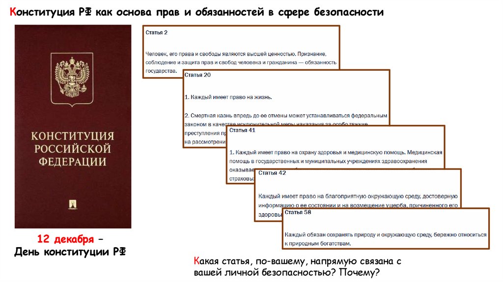 Конституция РФ как основа прав и обязанностей в сфере безопасности12 декабря –