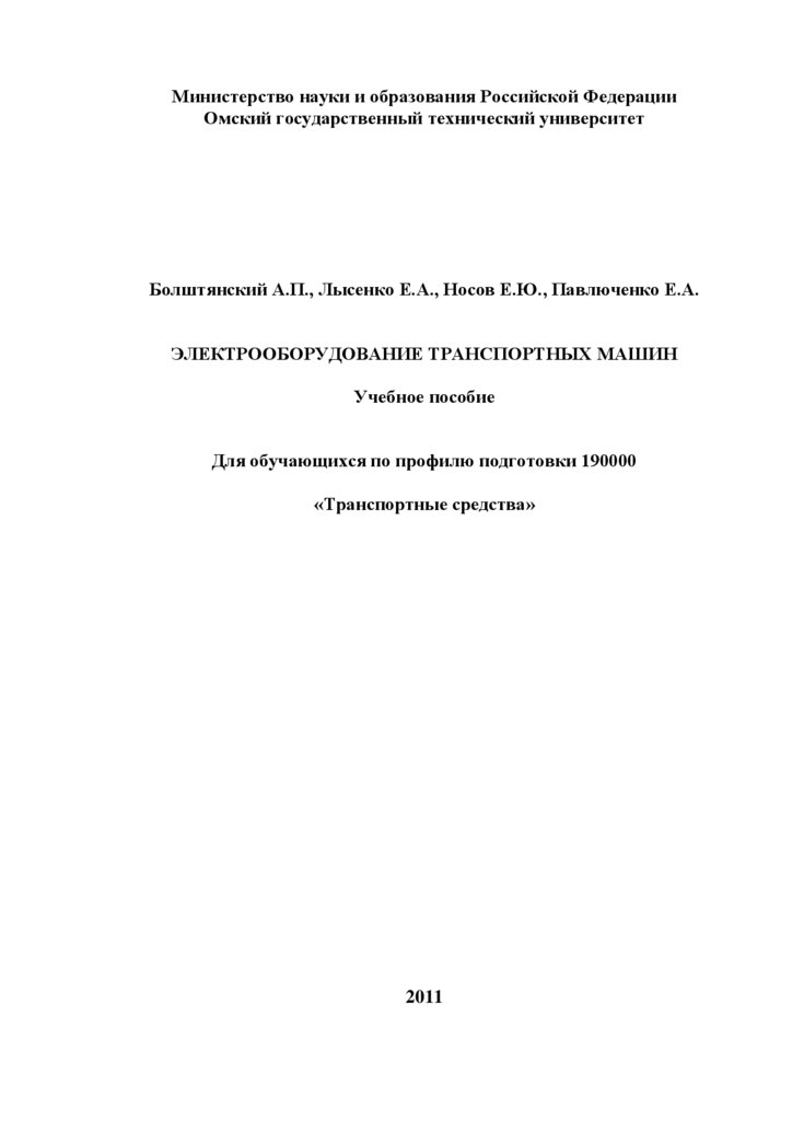 ЭЛЕКТРООБОРУДОВАНИЕ ТРАНСПОРТНЫХ МАШИН