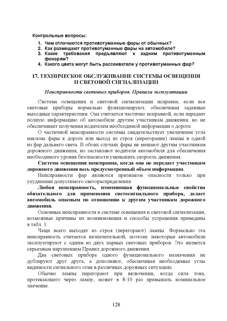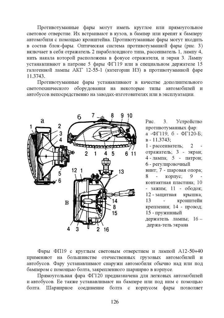 16.Противотуманные фары и фонари …………………………………..120