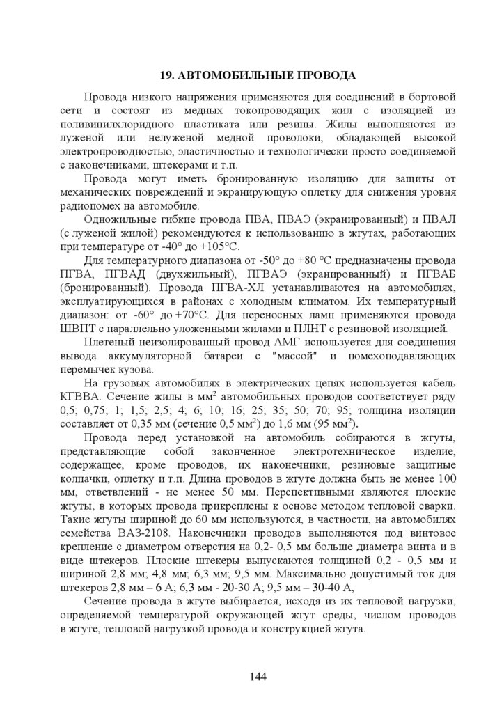 19. Автомобильные провода …………………………………………………140