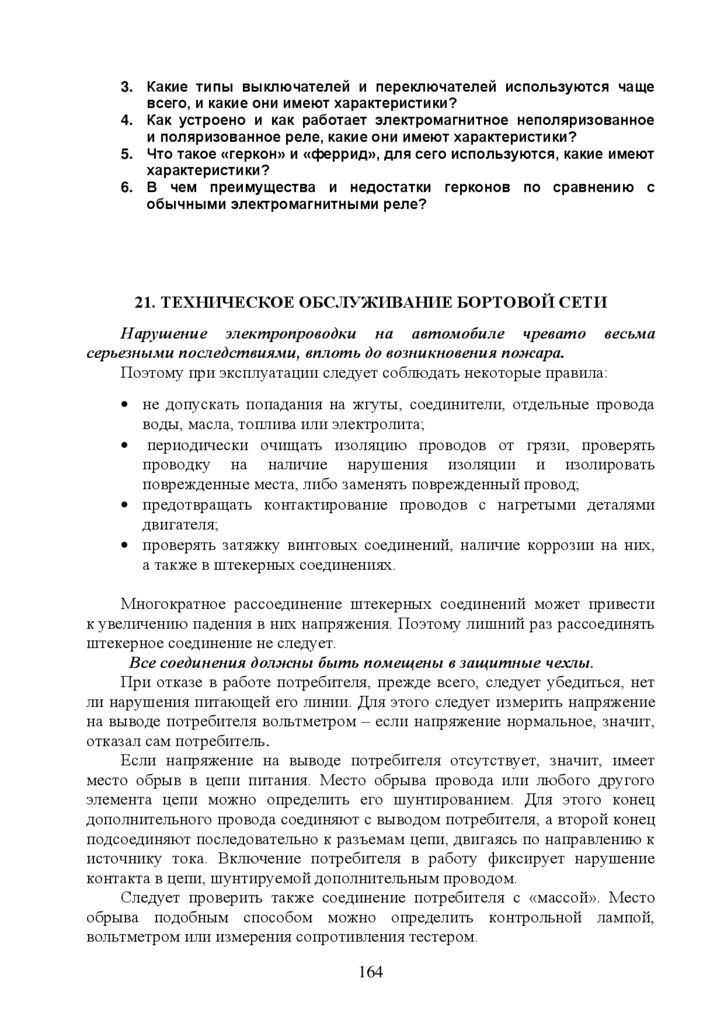 21.Техническое обслуживание бортовой сети …………………………159