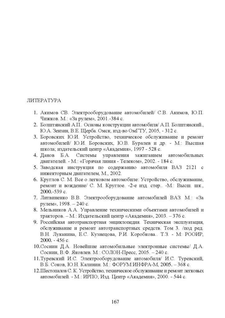 ЛИТЕРАТУРА1. Акимов СВ. Электрооборудование автомобилей/ С.В. Акимов, Ю.П.