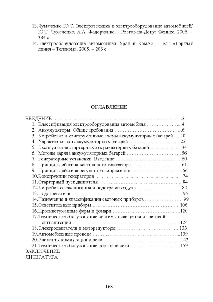 13. Чумаченко Ю.Т. Электротехника и электрооборудование автомобилей/Ю.Т. Чумаченко, А.А. Федорченко. - Ростов-на-Дону: Феникс, 2005. –