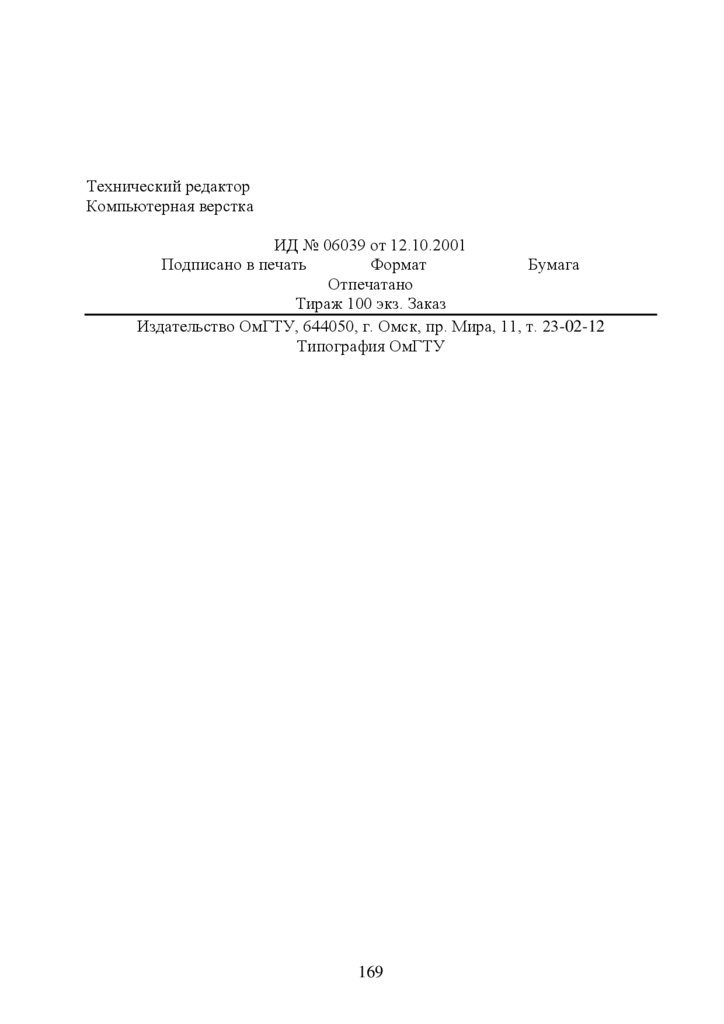 Издательство ОмГТУ, 644050, г. Омск, пр. Мира, 11, т. 23-02-12