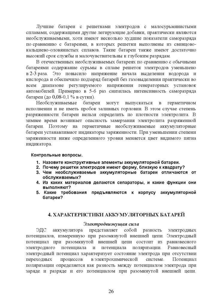 4. Характеристики аккумуляторных батарей ……………………………..…26