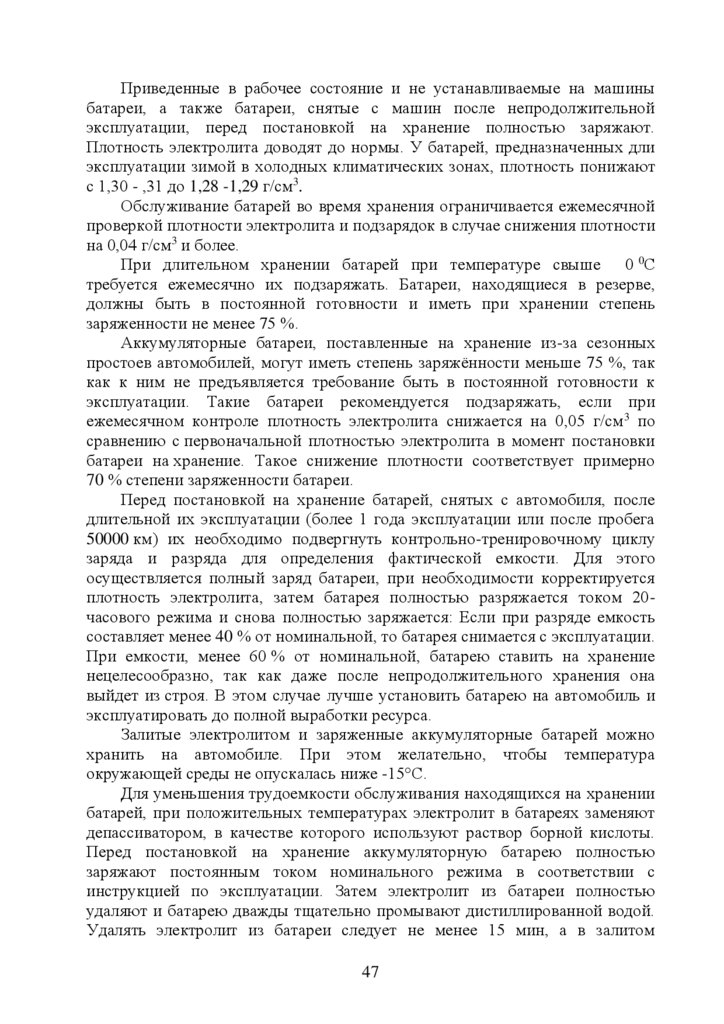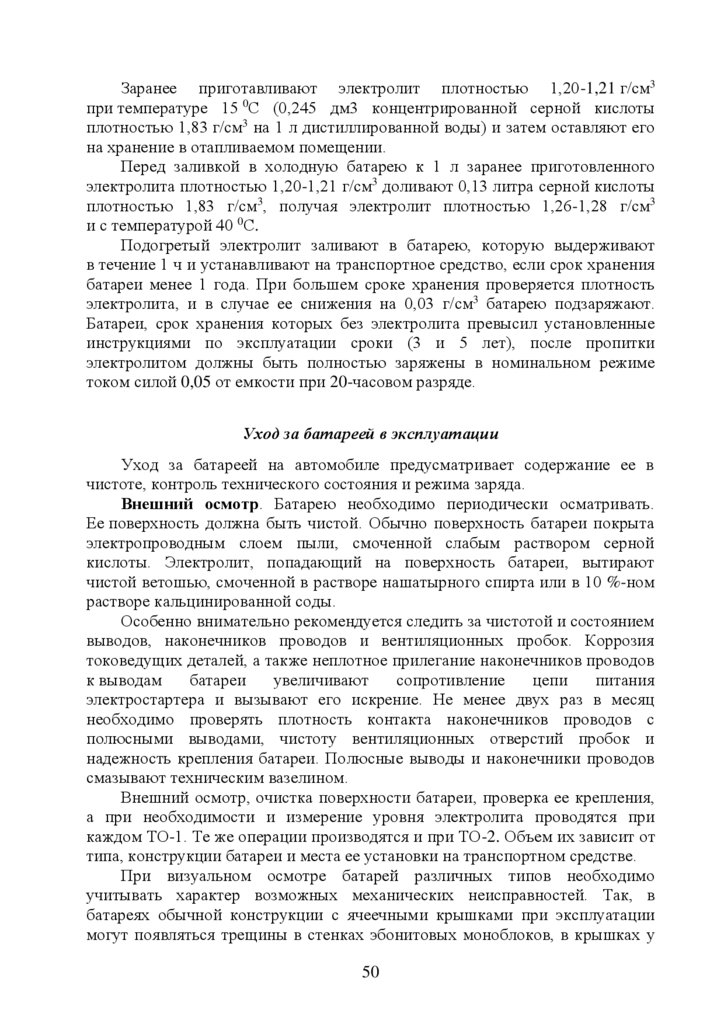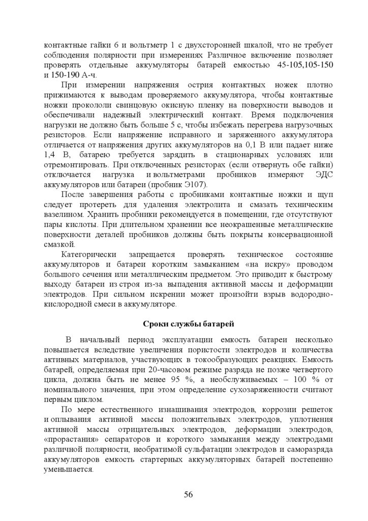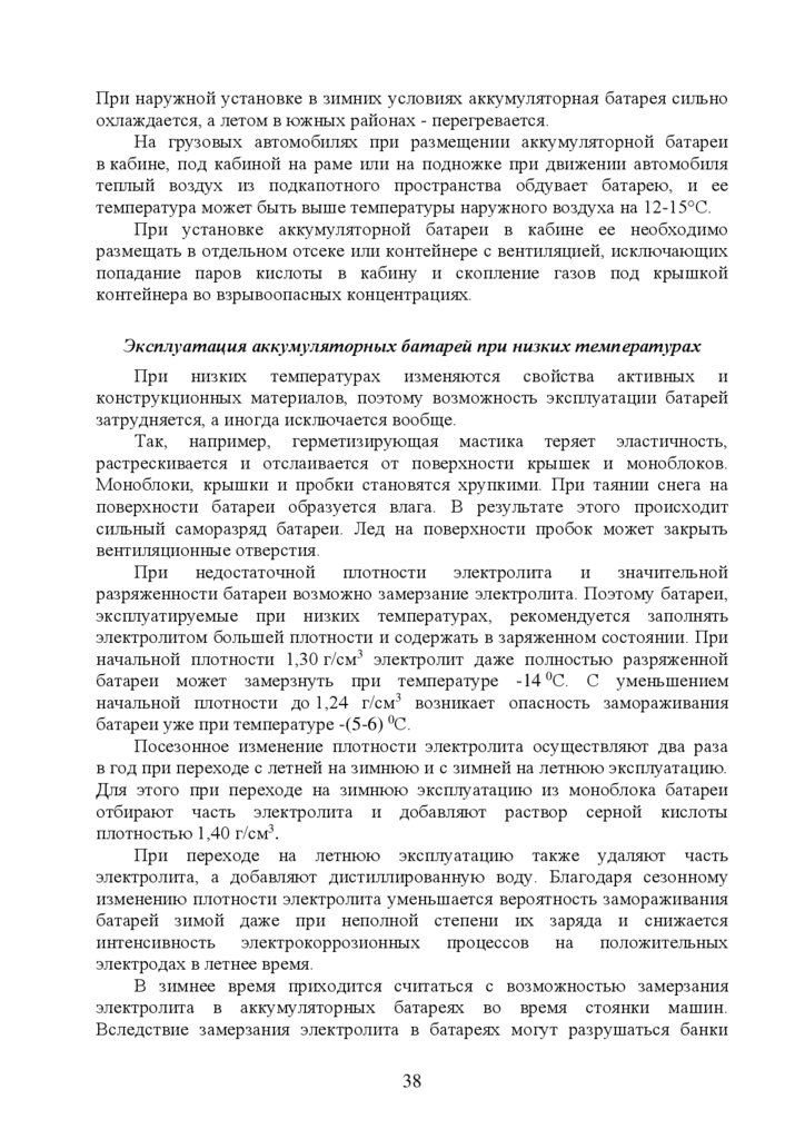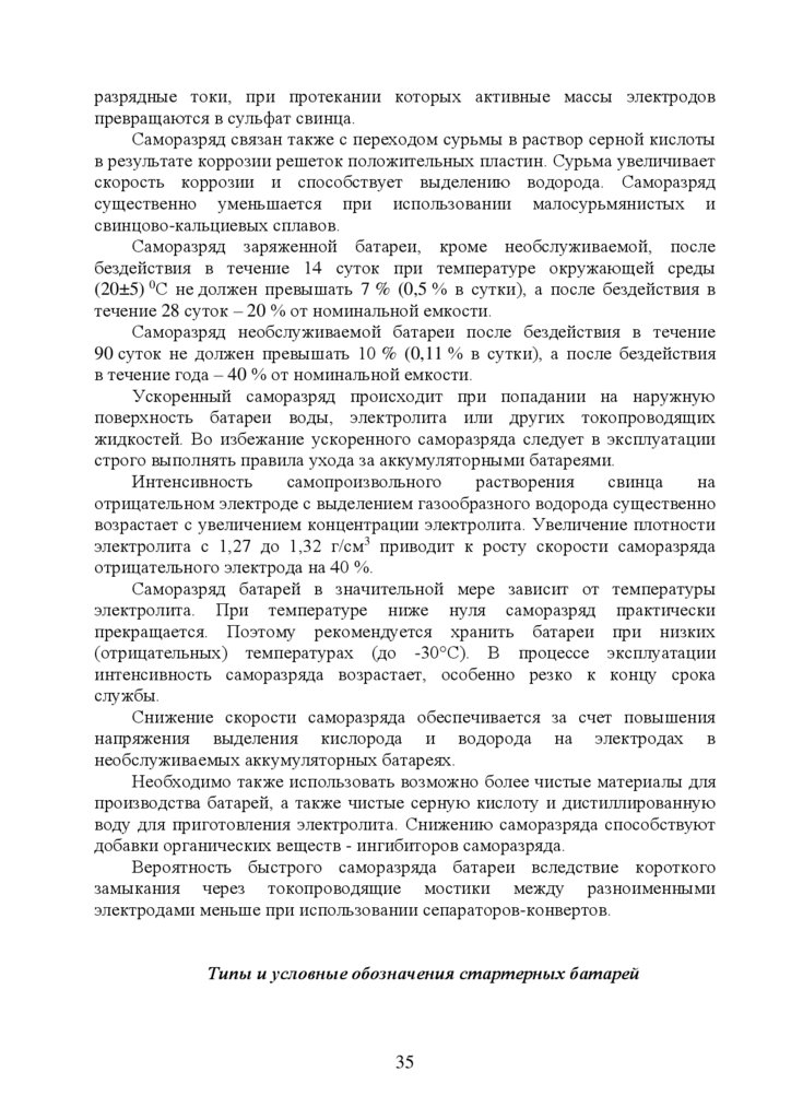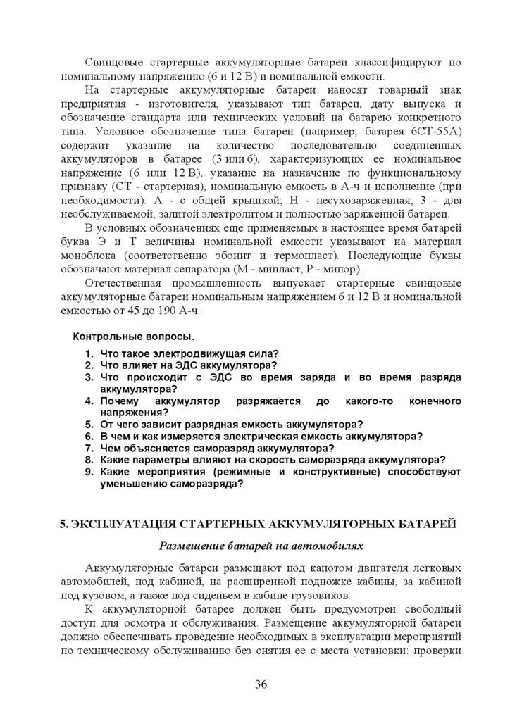 5. Эксплуатация стартерных аккумуляторных батарей ………………….…35