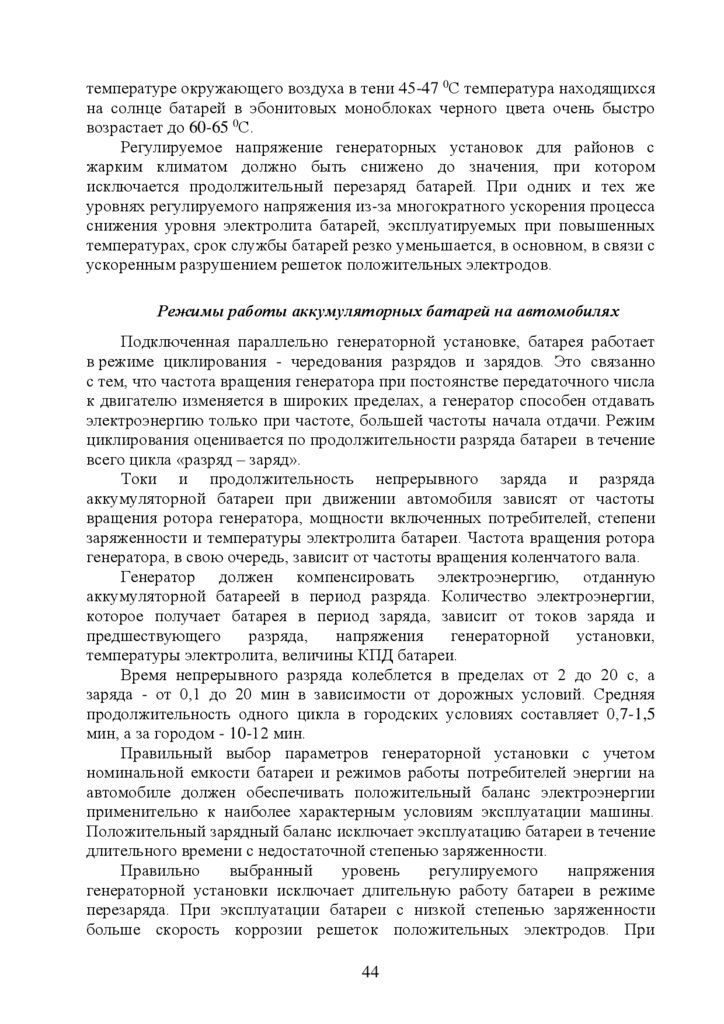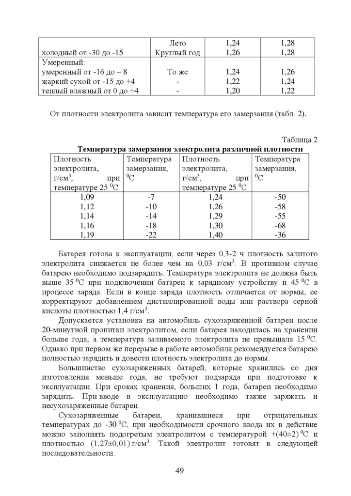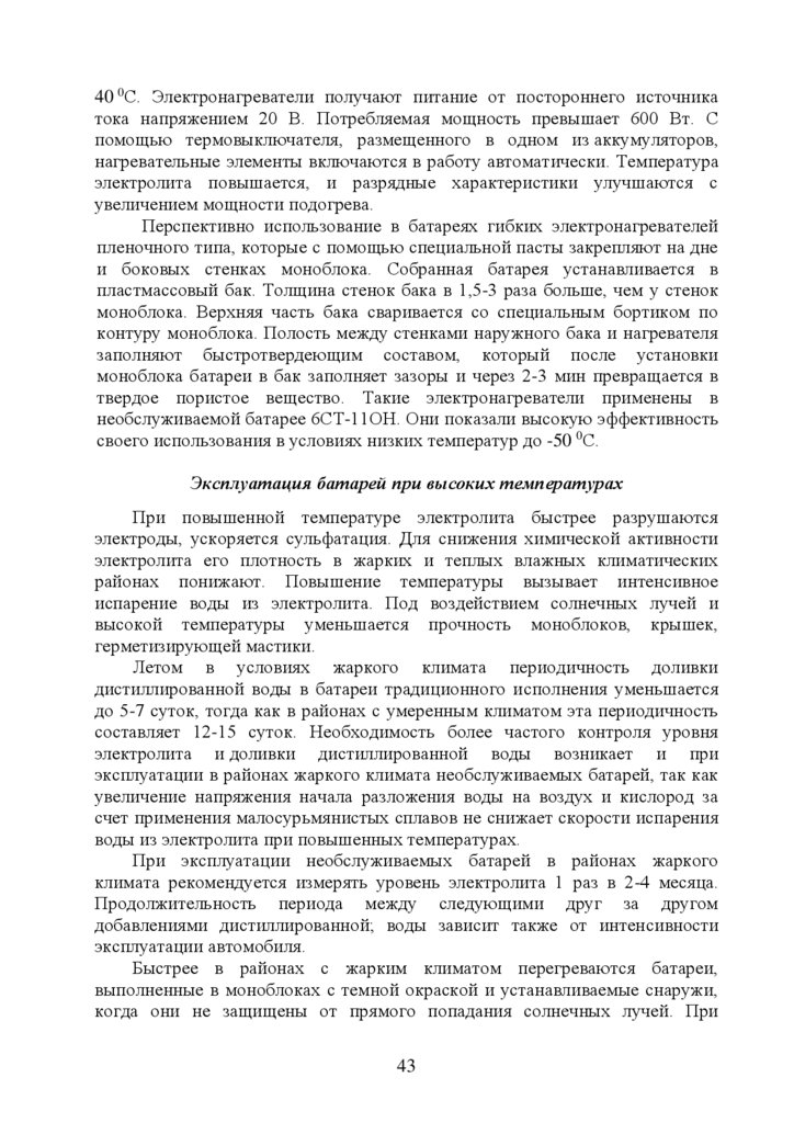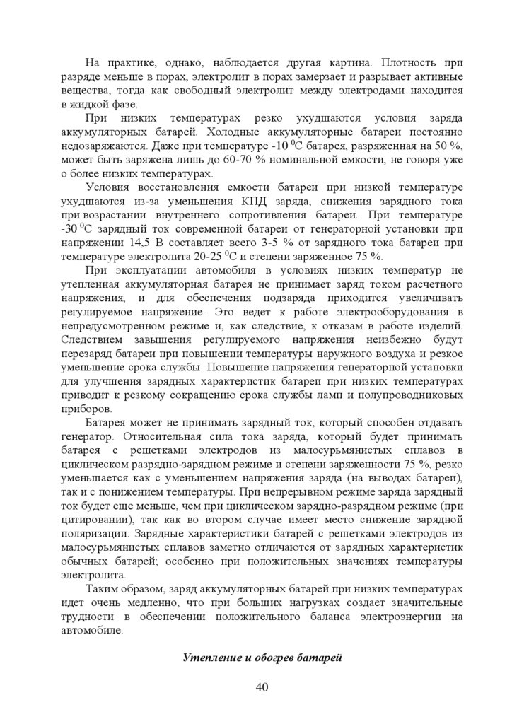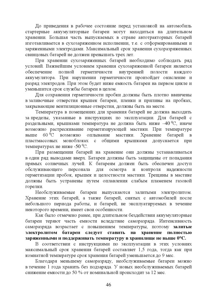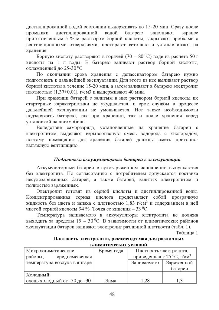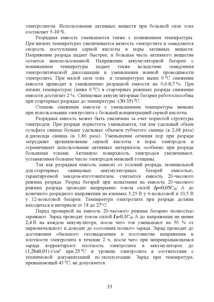 5. Эксплуатация стартерных аккумуляторных батарей ………………….…35