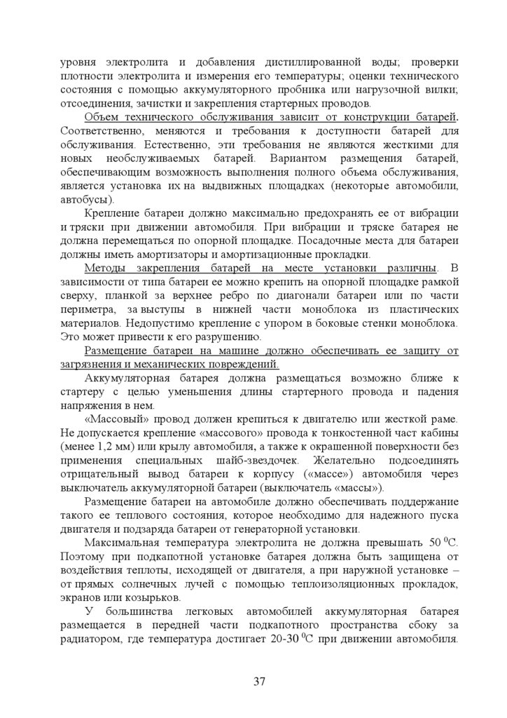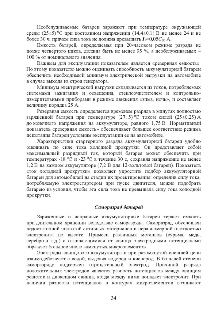 5. Эксплуатация стартерных аккумуляторных батарей ……………….34