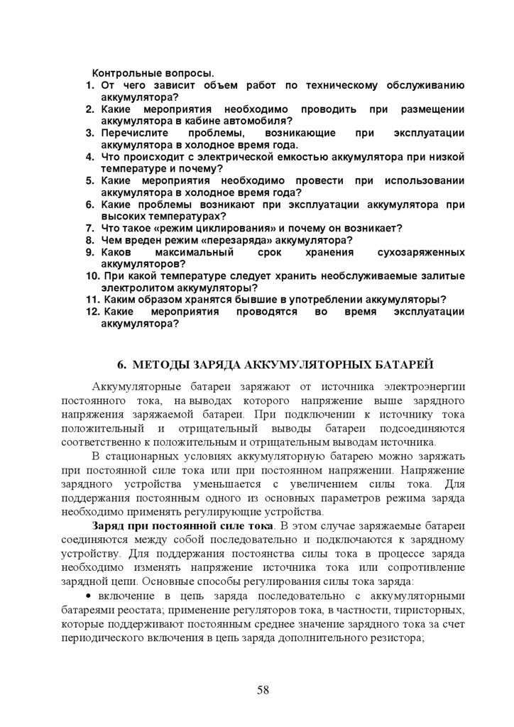6. Методы заряда аккумуляторных батарей ………………………………....57