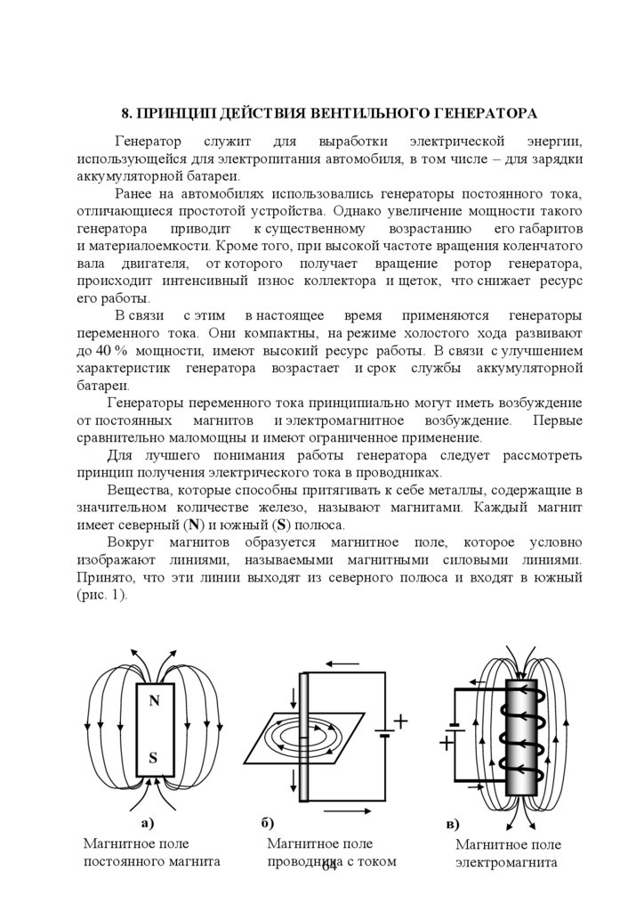 8. Принцип действия вентильного генератора …………………………61