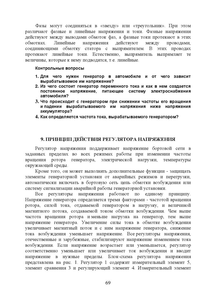 9. Принцип действия регулятора напряжения ……………………………….67