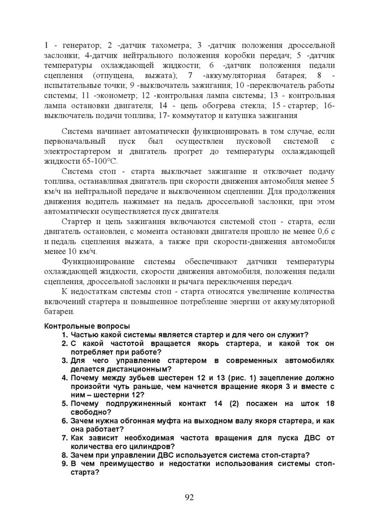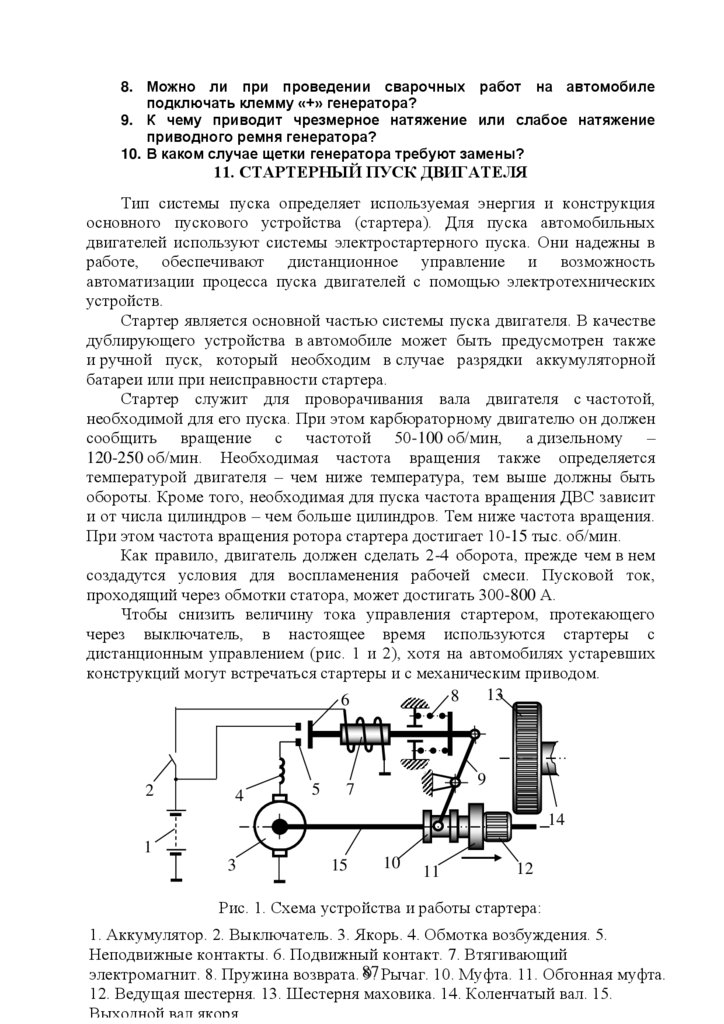 11. Стартерный пуск двигателя ……………………………………………….85