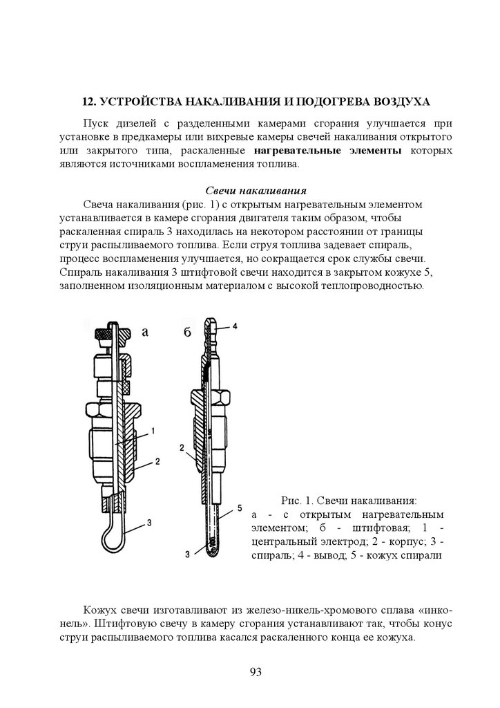12. Устройства накаливания и подогрева воздуха …………………………..90