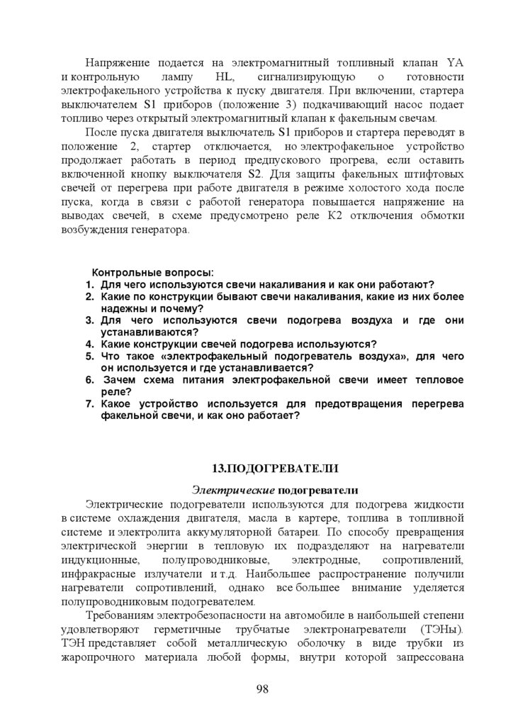 12.Устройства накаливания и подогрева воздуха ………………………89