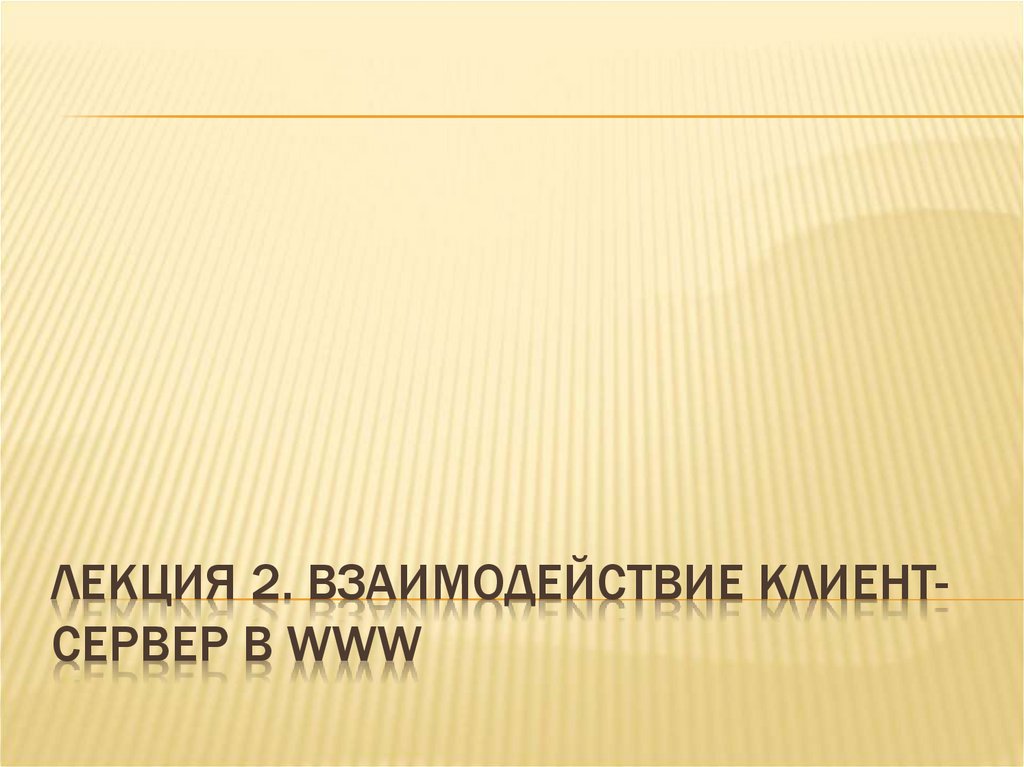 ЛЕКЦИЯ 2. ВЗАИМОДЕЙСТВИЕ КЛИЕНТСЕРВЕР В WWW2. КЛИЕНТ-СЕРВЕРНЫЕ ТЕХНОЛОГИИ ИНТЕРНЕТ