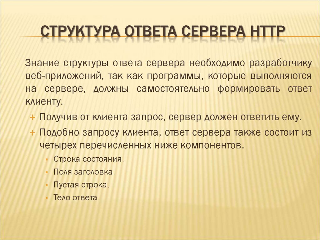 Каждое HTTP-сообщение состоит из трёх частей, которыепередаются в указанном порядке:
