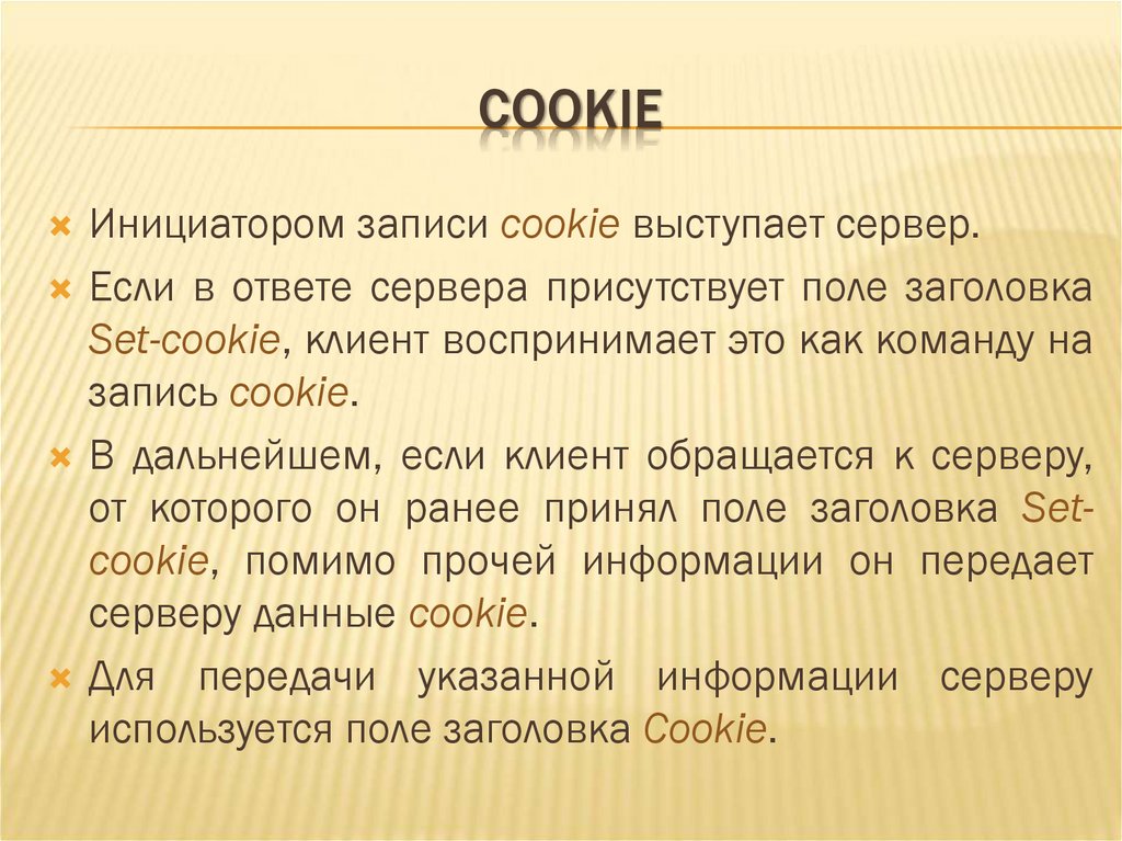 заголовка Set-сookie. Получив его, клиент записывает cookie