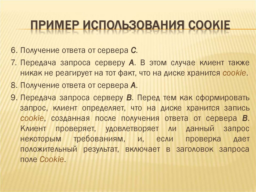 ПРИМЕР ИСПОЛЬЗОВАНИЯ COOKIE6. Получение ответа от сервера С.