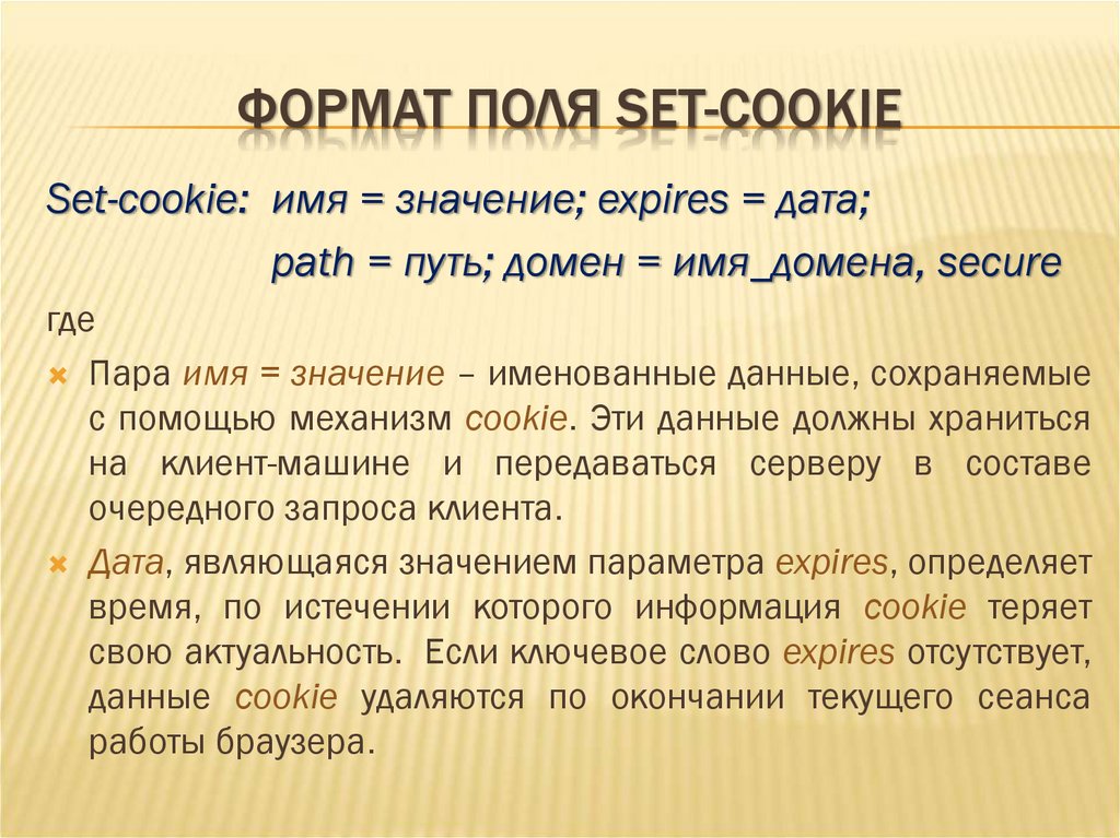 ФОРМАТ ПОЛЯ SET-COOKIESet-cookie: имя = значение; expires = дата;