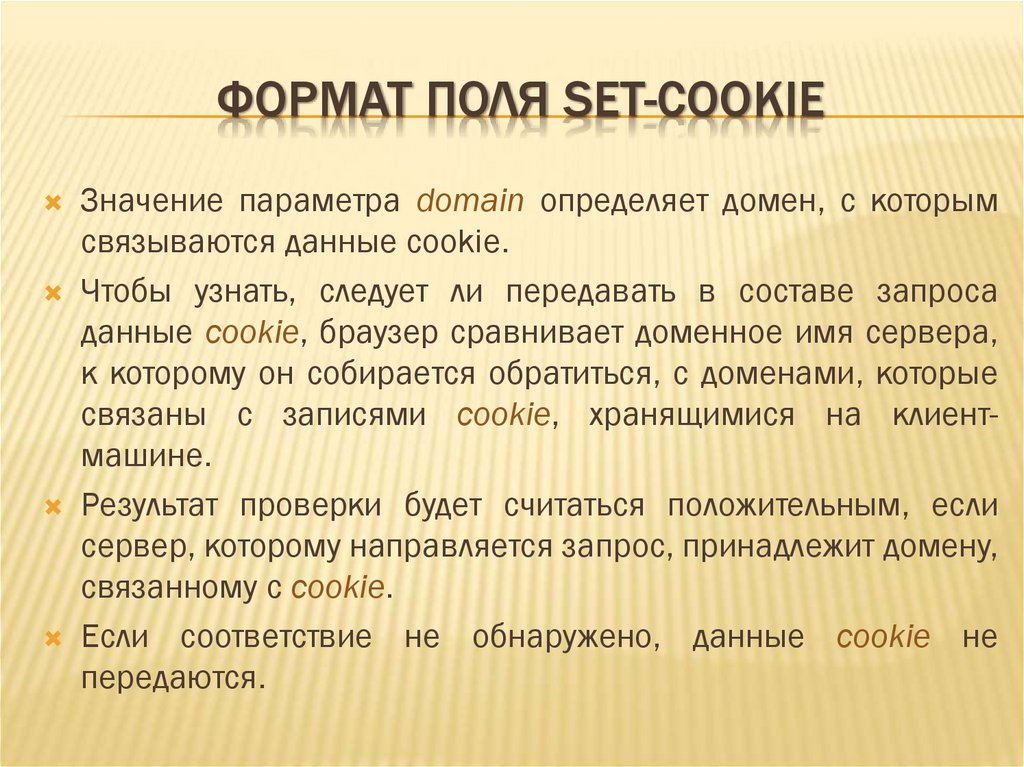 ФОРМАТ ПОЛЯ SET-COOKIEЗначение параметра domain определяет домен, с которым