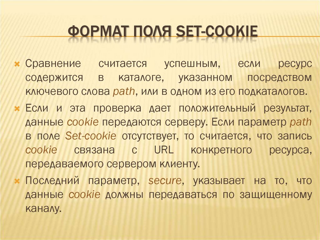 ФОРМАТ ПОЛЯ SET-COOKIEПуть, указанный в качестве значения параметра path,