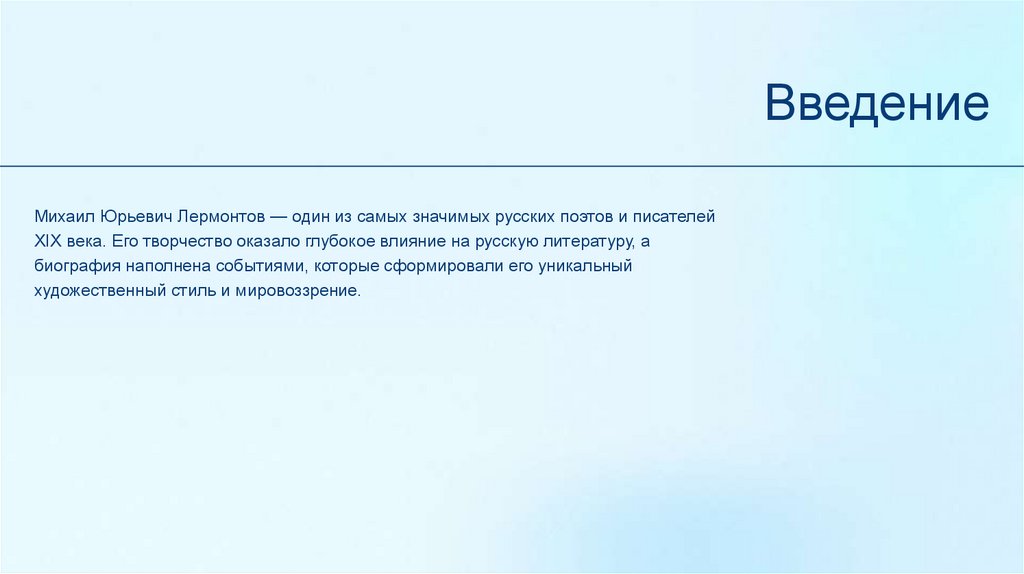 ВведениеМихаил Юрьевич Лермонтов — один из самых значимых русских поэтов и писателей
