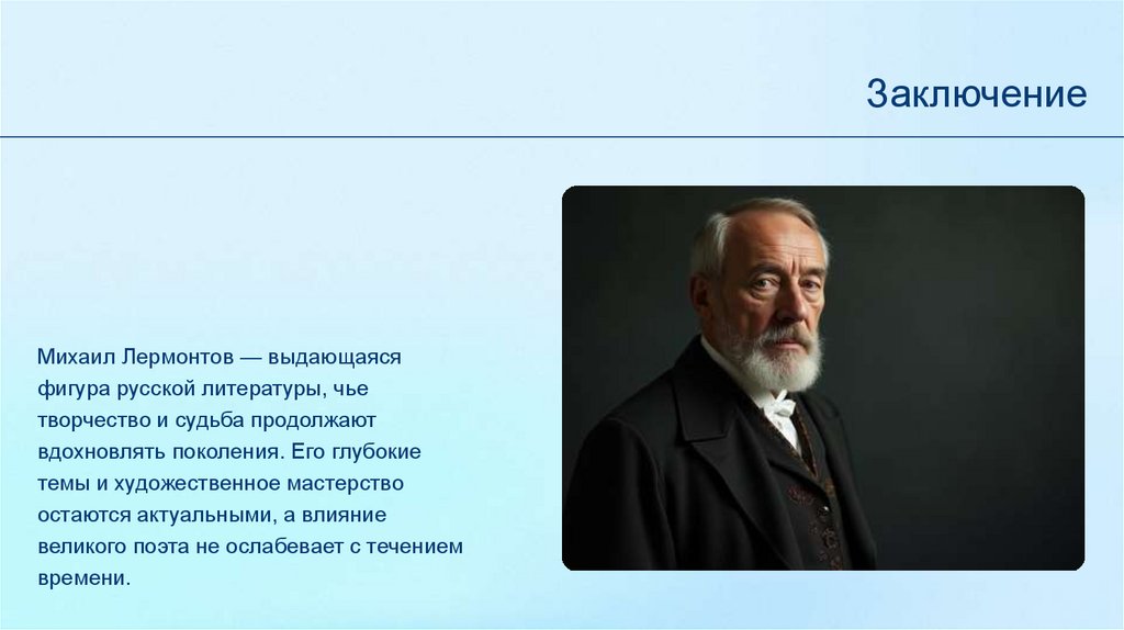 ЗаключениеМихаил Лермонтов — выдающаяся