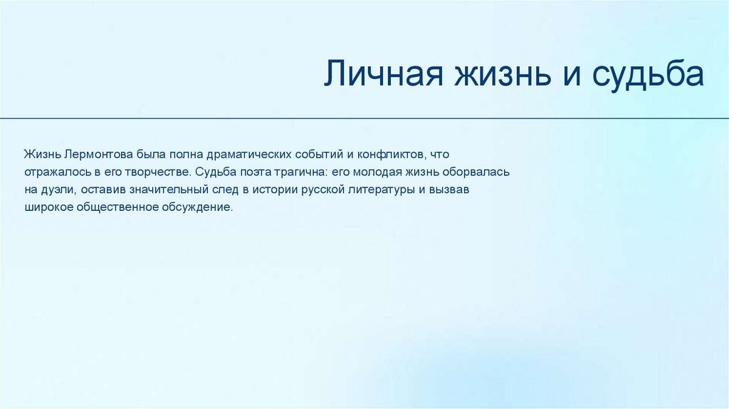 отражалось в его творчестве. Судьба поэта трагична: его молодая жизнь оборвалась