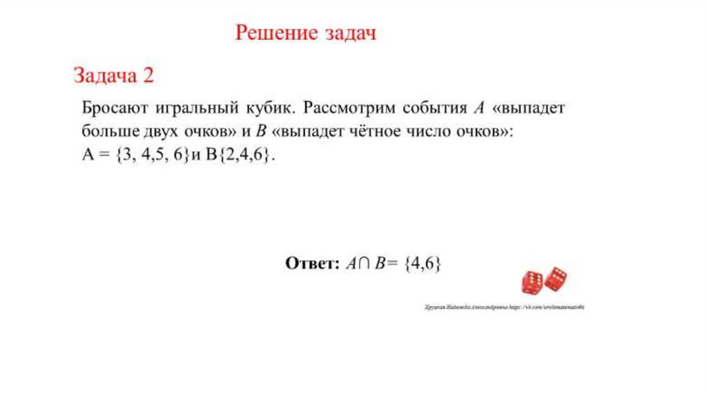больше 3, то A∩B — это выпадение числа 4 или 6.