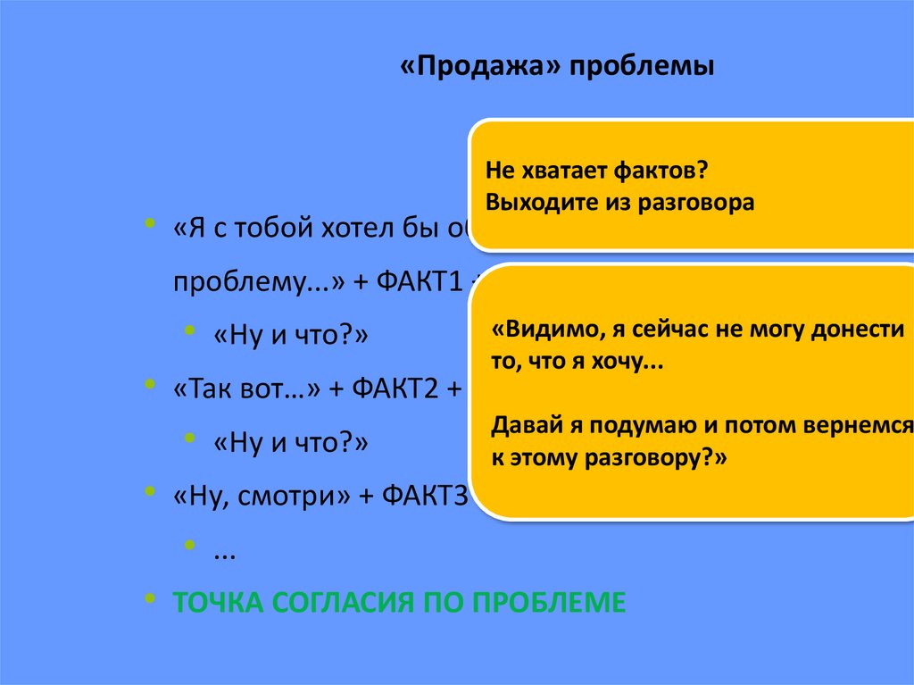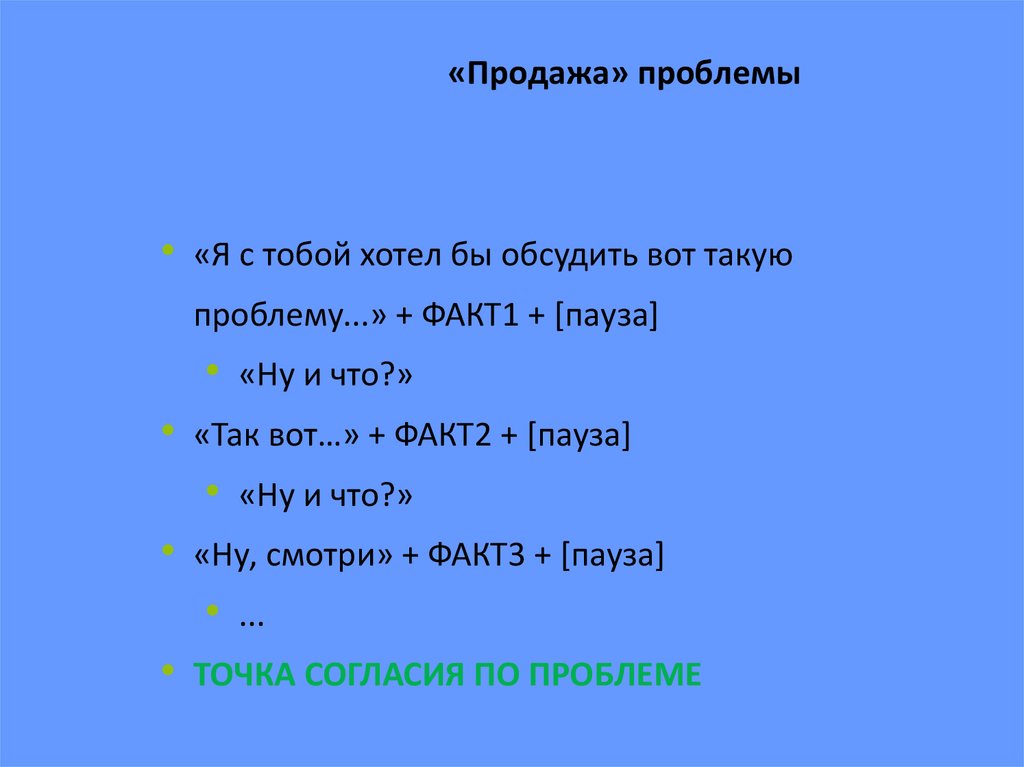 «Продажа» проблемы• «Я с тобой хотел бы обсудить вот такую