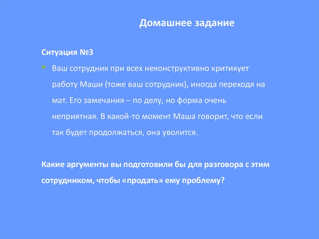 Домашнее задание1. Подготовьте аргументы для ситуации №3