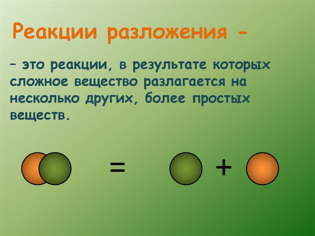 Реакции разложения – это реакции, в результате которыхсложное вещество разлагается на
