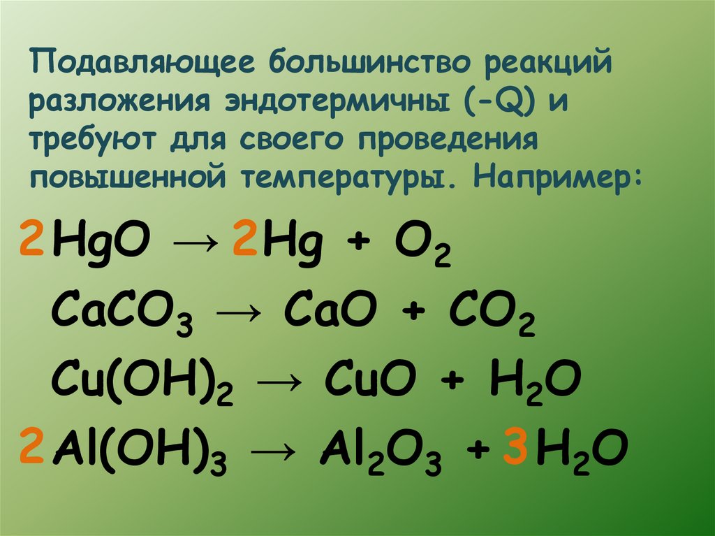 Подавляющее большинство реакцийразложения эндотермичны (-Q) и