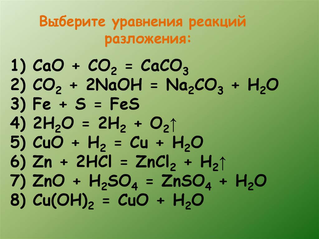 Выберите уравнения реакцийразложения: