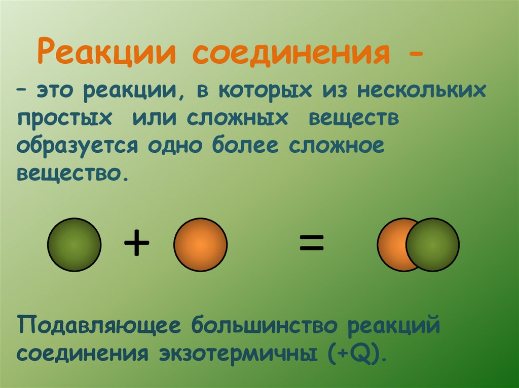 Реакции соединения -– это реакции, в которых из нескольких