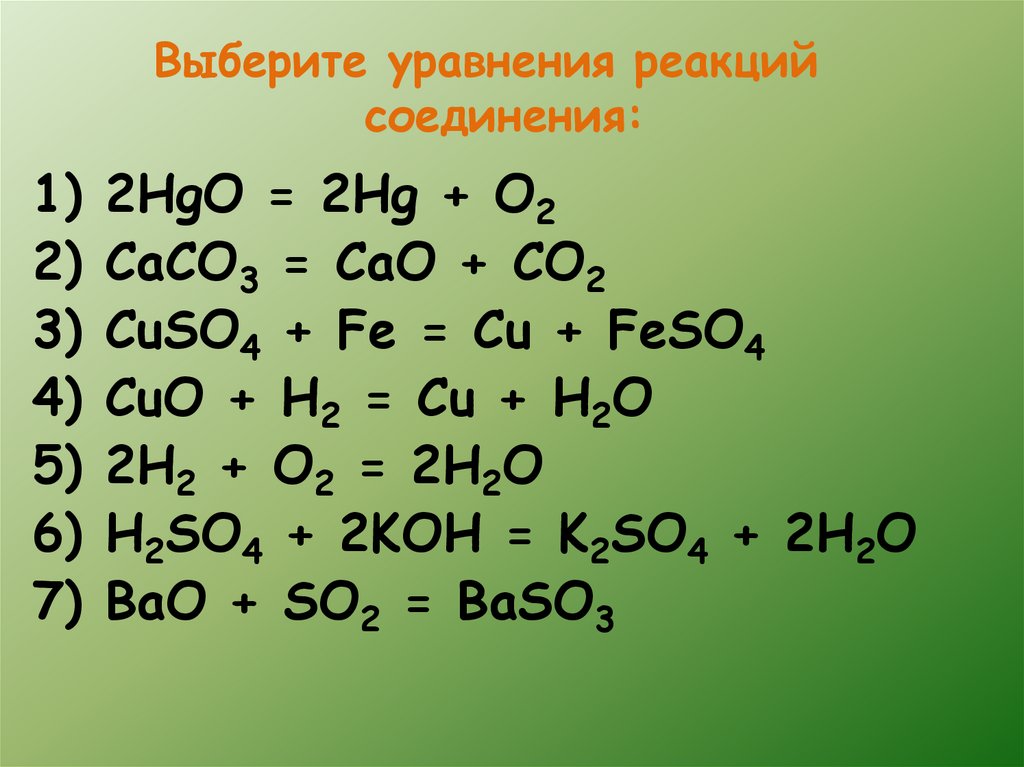 Выберите уравнения реакцийсоединения: