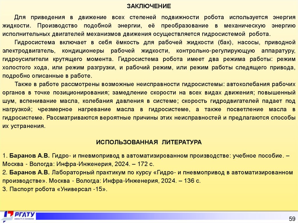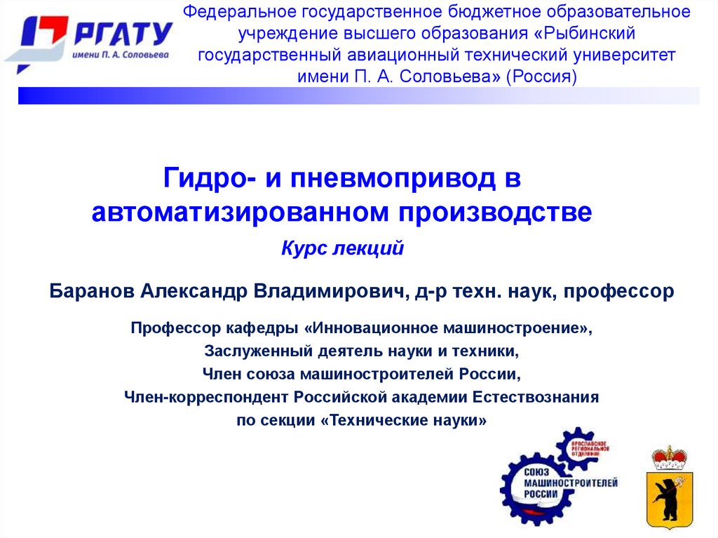 1. Баранов А.В. Гидро- и пневмопривод в автоматизированном производстве: учебное пособие. –