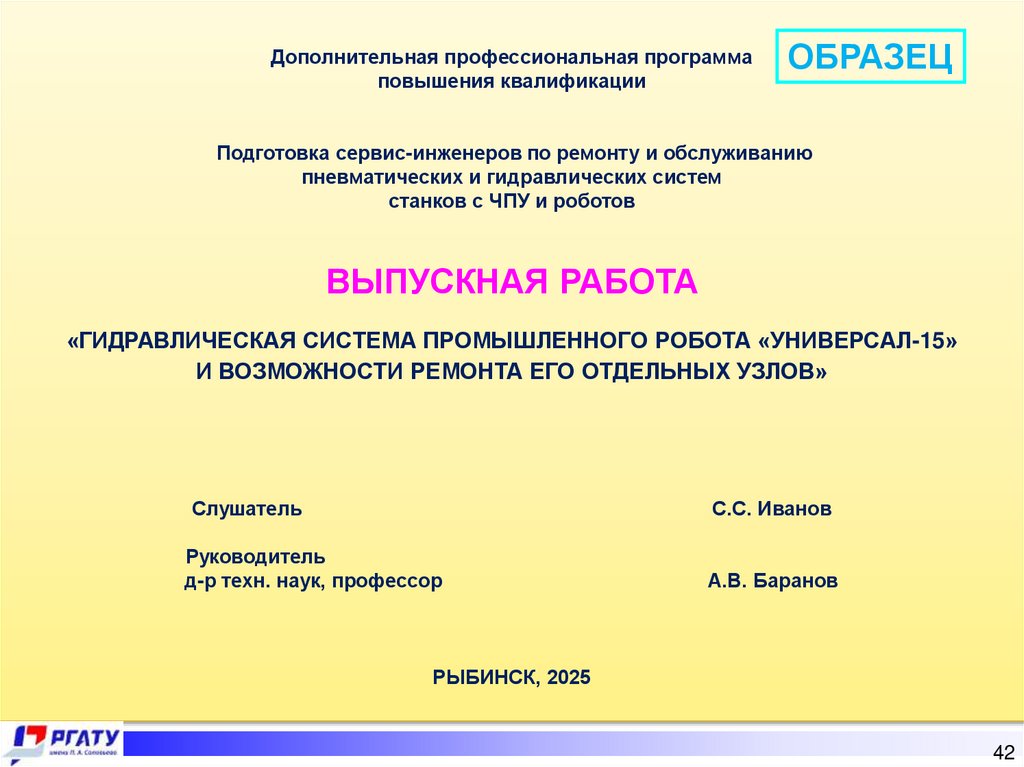 Федеральное государственное бюджетное образовательноеучреждение высшего образования «Рыбинский