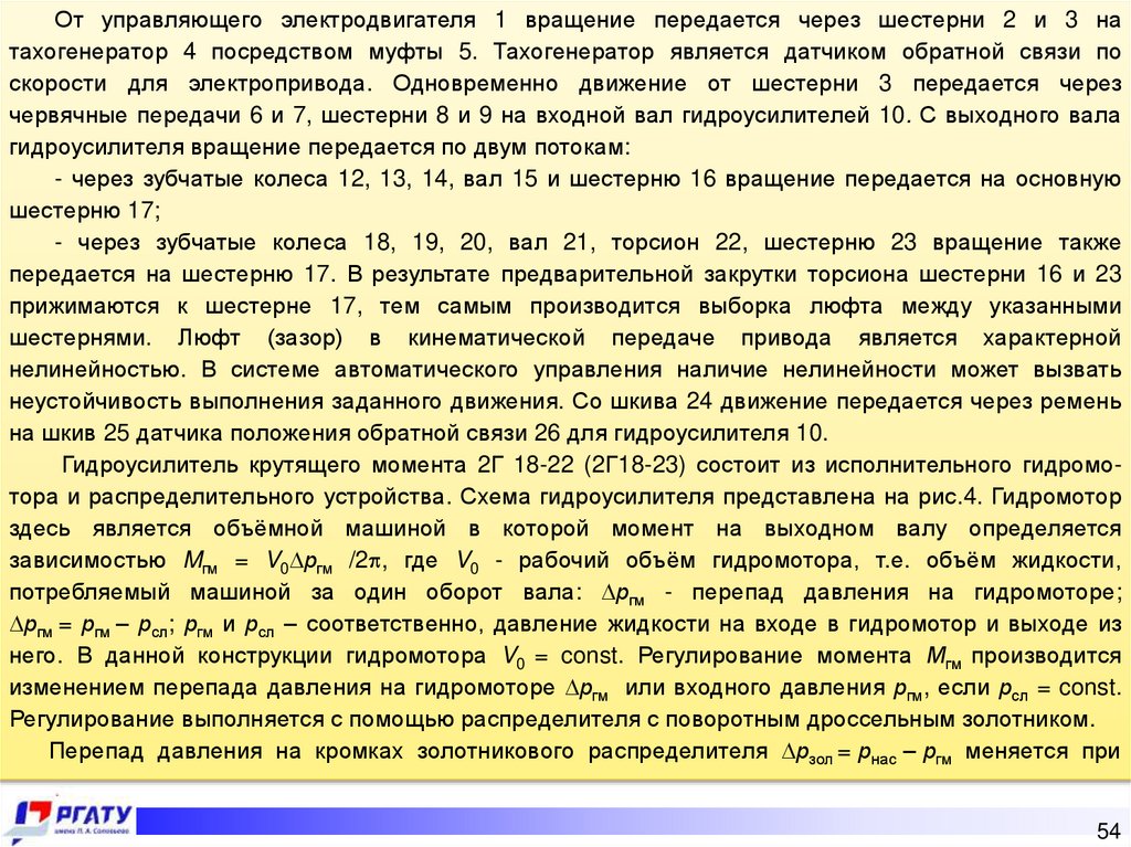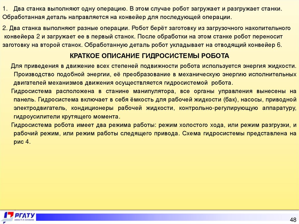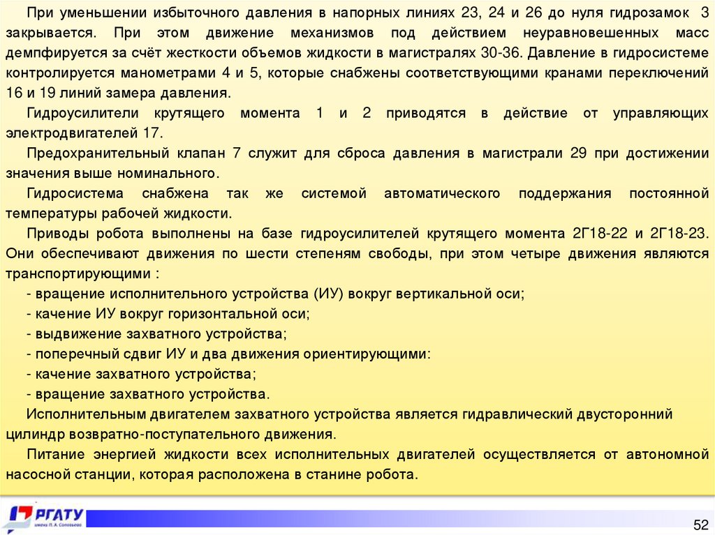 гидроусилители крутящего момента. Гидросистема робота имеет два режима работы: режим