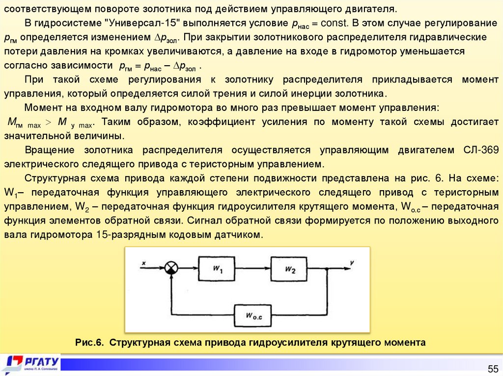 управлением, W2 – передаточная функция гидроусилителя крутящего момента, Wо.с – передаточная
