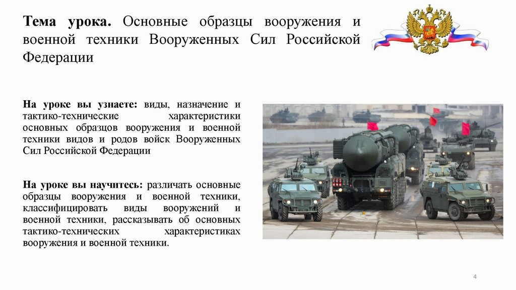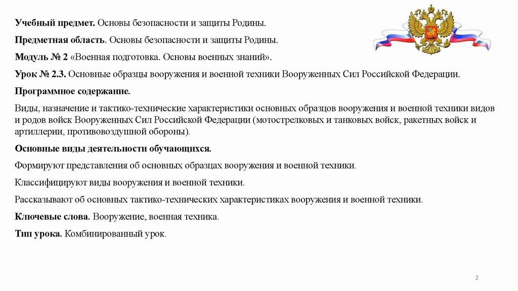 Урок № 2.3. Основные образцы вооружения и военной техники Вооруженных Сил Российской Федерации.