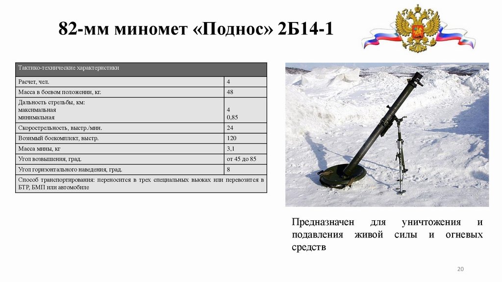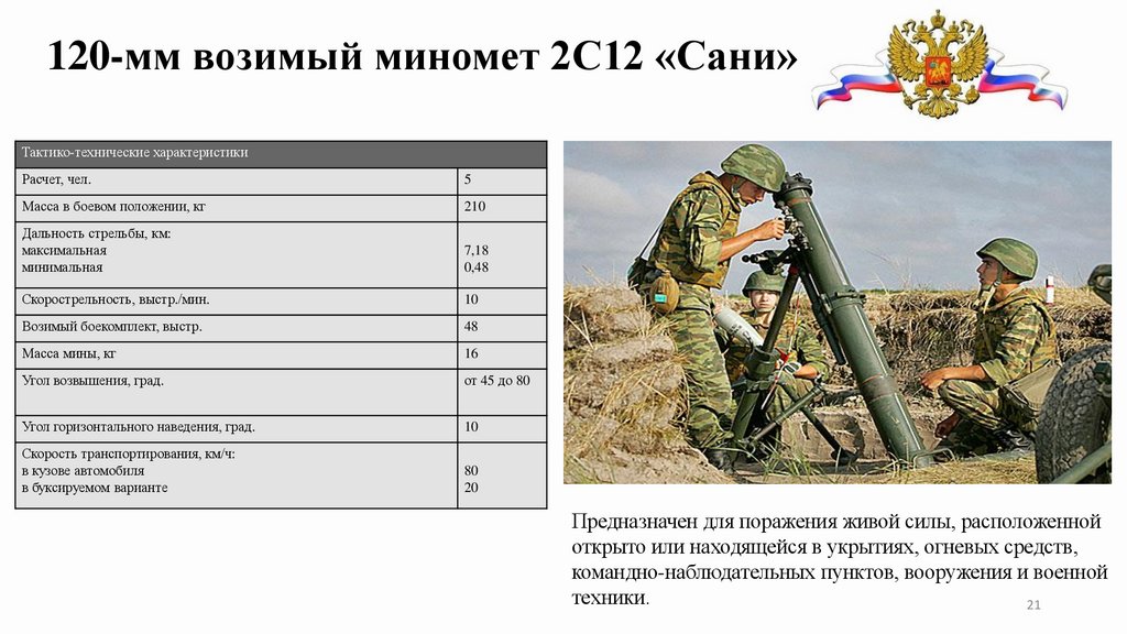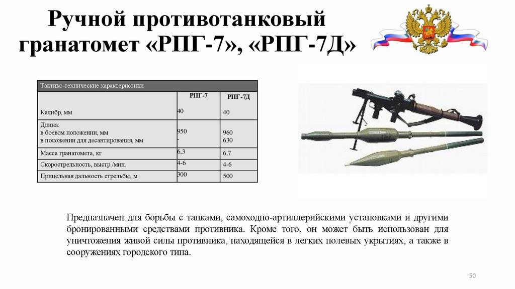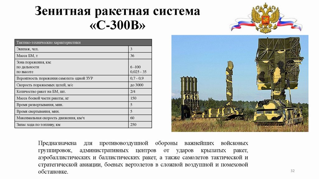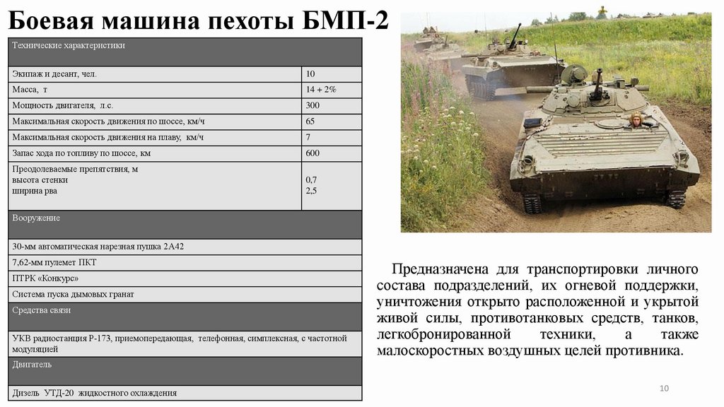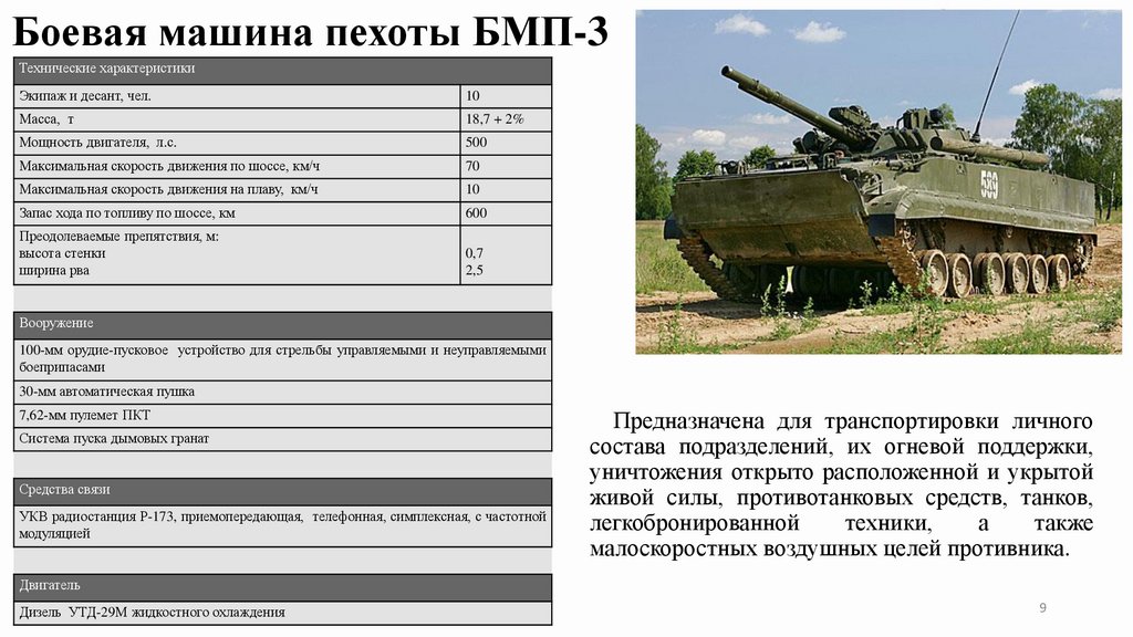 Виды, назначение и тактико-технические характеристики основных образцов вооружения и военной техники видов