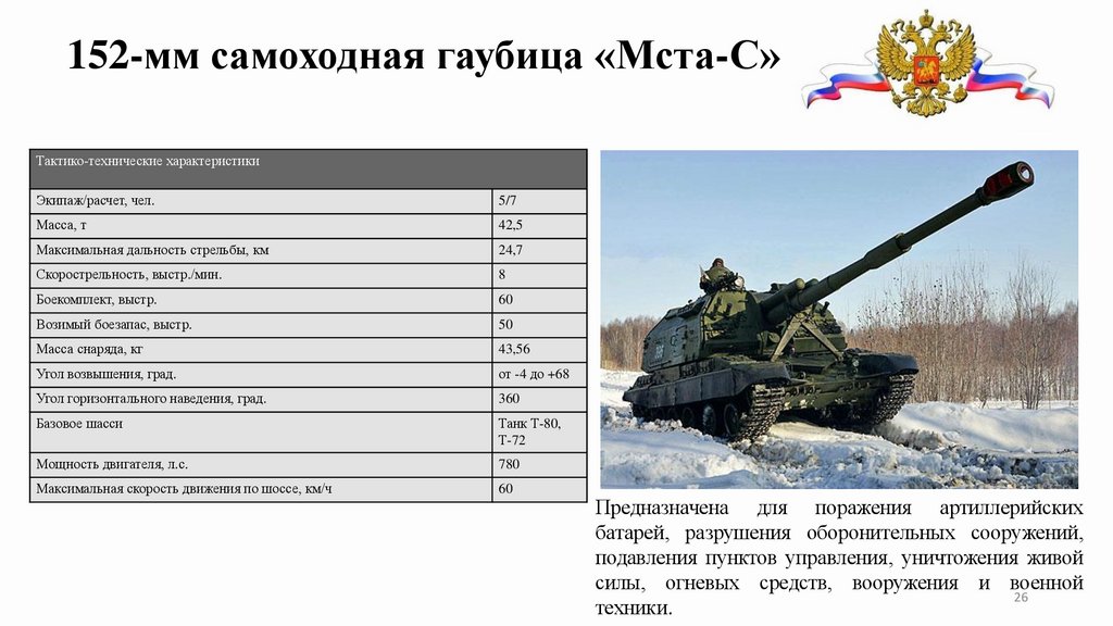 Рассказывают об основных тактико-технических характеристиках вооружения и военной техники.