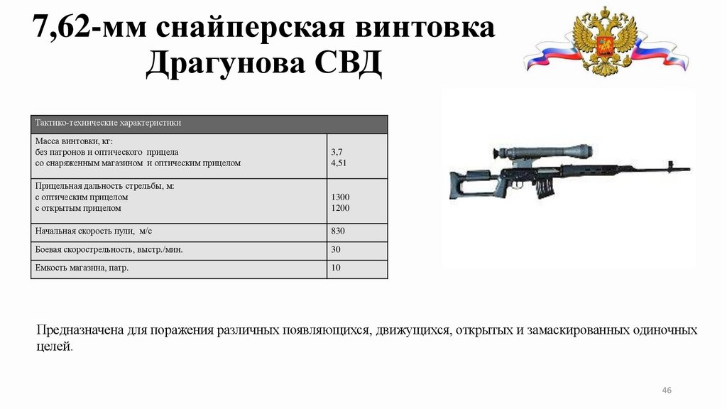 7. Масса без патронов, масса со снаряженным магазином, прицельная дальность