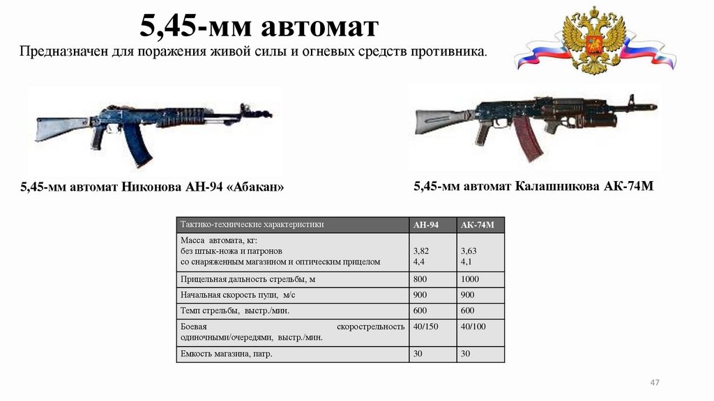 стрельбы, начальная скорость пули, боевая скорострельность, емкость магазина,